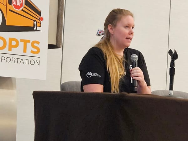Lexi Higgins from Truckers Against Trafficking (TAT) returned this year to share the importance of knowing the warning signs of human trafficking around school buses and shared resources that the nonprofit can offer to the school transportation industry.