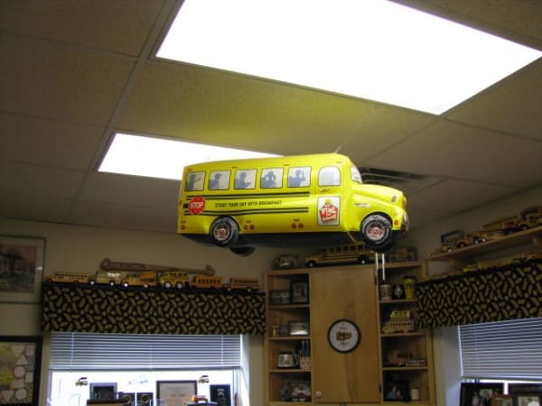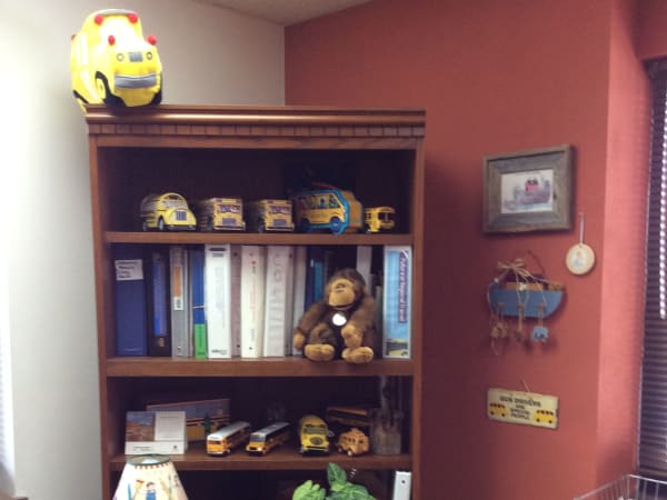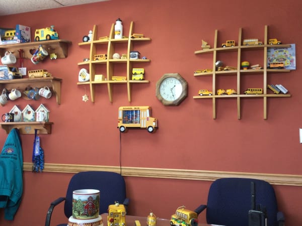 Another photo of the school bus swag in Elliott's office. Wade says Elliott has collected most of his memorabilia in the last three to four years, when he became the director of transportation.