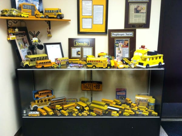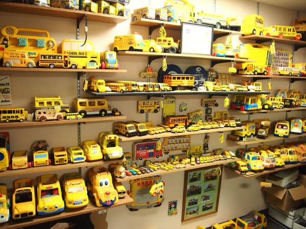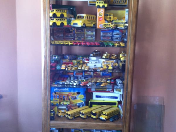 This is a photo of school bus enthusiast Matt Sayer's memorabilia collection.