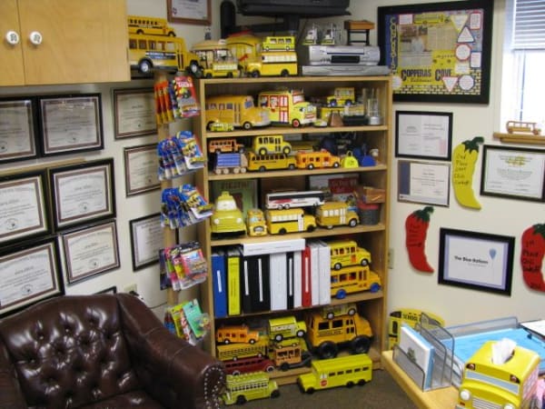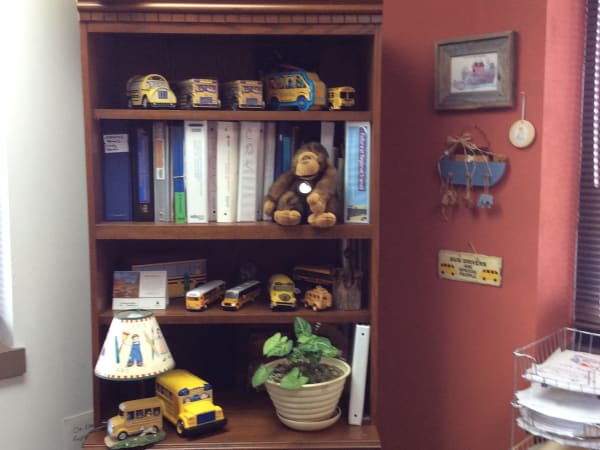 Cindy Hardin of Academy School District 20 in Colorado Springs, Colo., says this is a sample of the bus memorabilia she has received as gifts over the past 25 years.