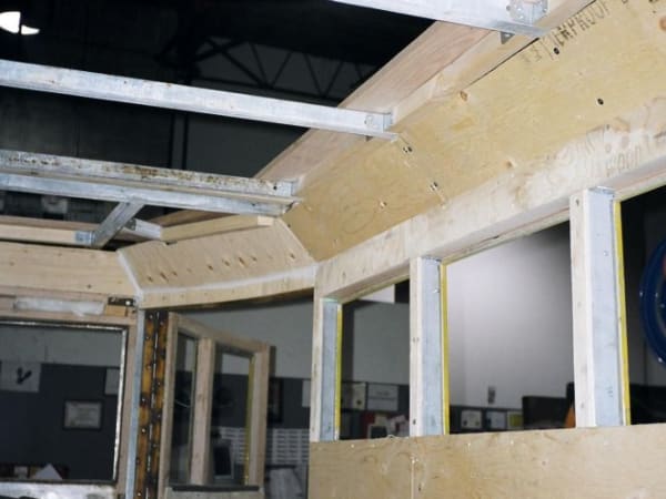 This shot depicts the installation of the interior lining. This would form the base for the finishing material.