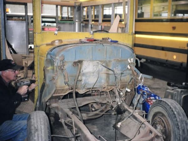 A leafy deciduous tree was growing through the middle of the 1947 International school bus when it was uprooted and sold to Southland Transportation in 2002. About a year later, the maintenance team at the Calgary, Alberta-based company decided to restore the run-down bus to celebrate the province's centennial. Despite the vehicle's condition, the staff became excited at the thought of such a major restoration project. "It was a total derelict, but the guys in the shop rallied around it," says Harry Davis, Southland's manager of fleet and facilities. For 18 months, Southland's technicians and volunteers dedicated numerous hours to the project.