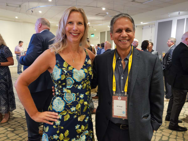 Jenna Fromm from Palmer Bus and GP Singh from Bytecurve pose for a photo during the cocktail and networking hour prior to the awards dinner.