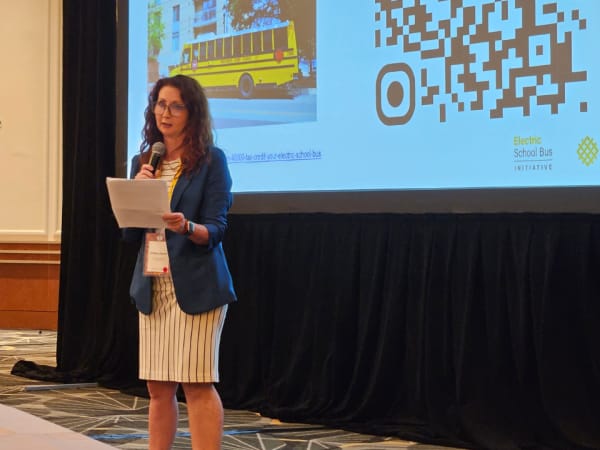 Brittany Barrett, WRI’s deputy director, implementation and operations for the Electric School Bus Initiative, offered an update on its website’s funding clearinghouse, technical assistance  and trainings through collaboration with the Clean Cities coalitions, V2G and V2X pilots in California, Colorado, and New York, and its air quality studies with the University of Michigan in both Michigan and in Cherokee, North Carolina. “There are still challenges, but the foundation is stronger than ever,” she said.