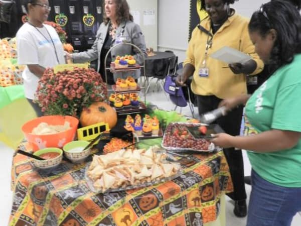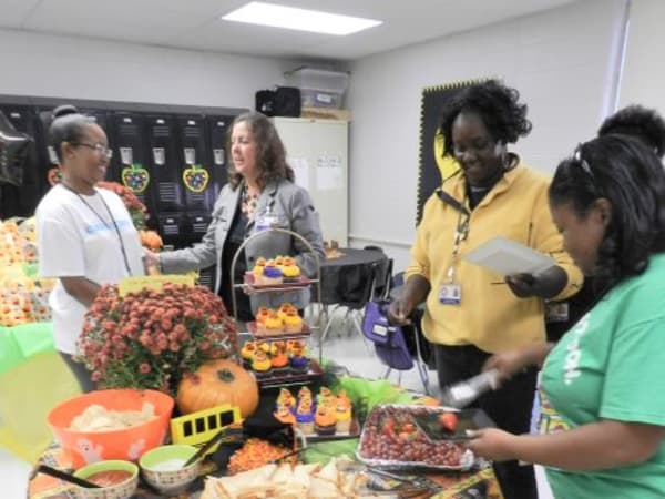 At Shadowlawn Middle School, the staff holds an appreciation event with food, goodie bags and T-shirts for the bus drivers as part of School Bus Safety Week.