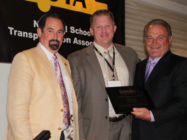 2010: Blake Krapf (center) was named SBF's 43rd Contractor of the Year. He is pictured with Donald Fowler, who was president of the National School Transportation Association (NSTA) (left), and SBF Publisher Frank Di Giacomo. Krapf is CEO of his family's business, Krapf Bus Companies. Blake Krapf has led the business through significant growth in recent years. In addition, he has served for several years on the NSTA board of directors as an at-large delegate. He has also chaired the association’s membership committee. To read more on Krapf's career, click here.
