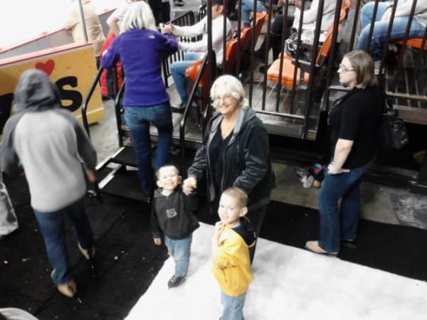 Norman (Okla.) Public Schools bus driver Theresa Callahan, pictured with her two grandsons, was among the attendees of the district’s “Love the Bus Hockey Night” on Feb. 19. Christy Clemons, assistant director of transportation, partnered with the Oklahoma City Barons hockey team and the Oklahoma Association for Pupil Transportation to organize the event, in which bus drivers and monitors got to watch the game against the San Antonio Rampage and skate on the ice afterward.