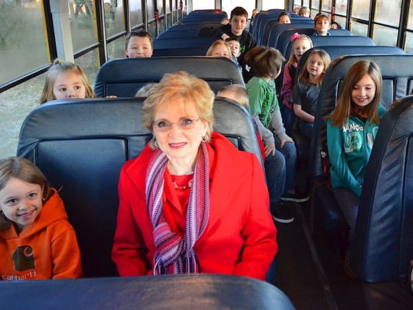 Dr. June Atkinson, state superintendent of the public schools of North Carolina, showed her support for Love the Bus month, riding on a bus and then celebrating with drivers at an elementary school in Rutherford County.