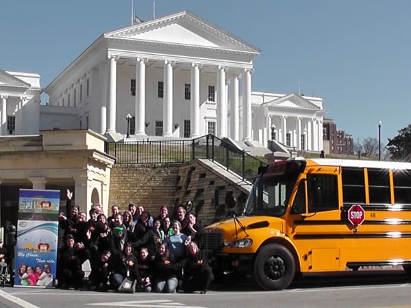 The following week, the Virginia Association for Pupil Transportation (VAPT) organized a Love the Bus rally in downtown Richmond at the Capitol Square Mall bell tower.