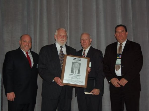 Don Carnahan (second from left) was elected to NAPT's Hall of Fame. Congratulations were extended by Lenny Bernstein (left), Ed Donn (second from right) and Mike Roscoe (right).