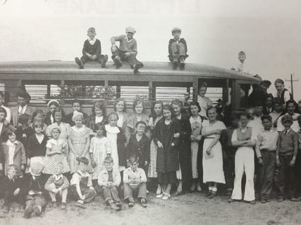 This 1930s photo shows a bus and students from Little Lake, Michigan. Douglas Zimmerman, transportation director at Gwinn (Mich.) Area Community Schools, submitted the shot, which is from the archives of the Forsyth Township Historical Society.