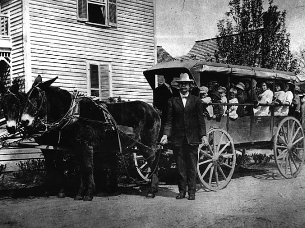 Some buses have horsepower; this one had mule-power! North Carolina pupils packed into the wagon for the ride to school. State pupil transportation director Derek Graham submitted the circa-1910 shot.