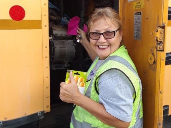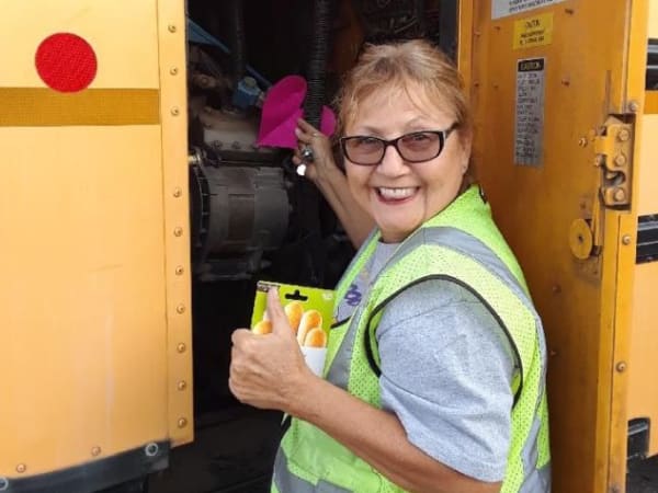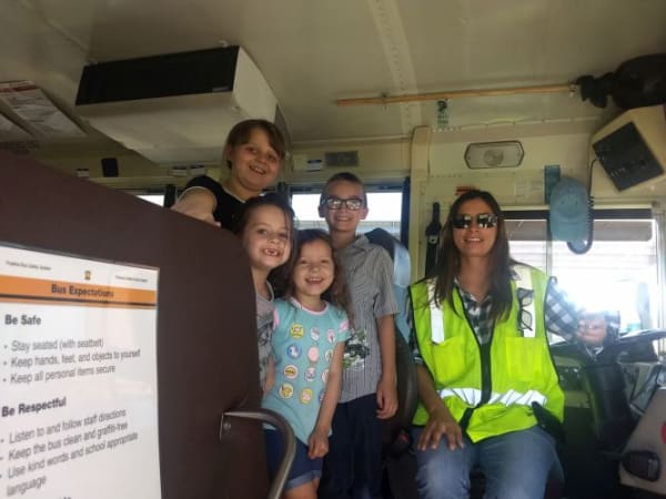 Shannon Weber, the director of transportation for Florence Unified School District #1, took this photo of a driver with some of her students just after class was dismissed. Weber was visiting buses to meet students and assist with seating charts.