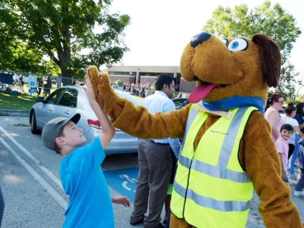 First Student's safety mascot Safety Dog wished students at Calgary (Alberta) Catholic School District a happy first day of school.