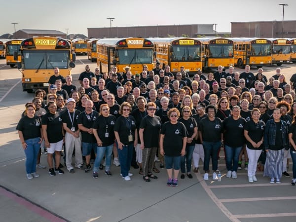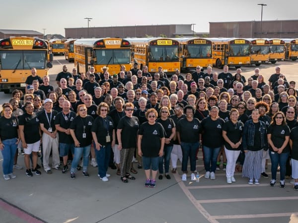 The team also kicked off the school year with a cheerful group photo in front of the district’s buses. Photo courtesy Allen ISD
