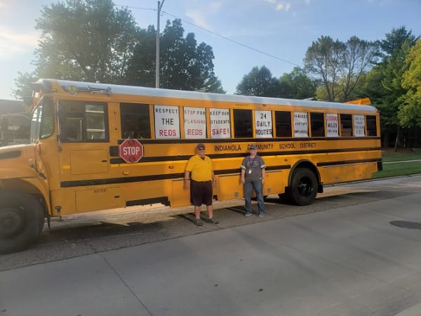 Indianola (Iowa) Community School District displayed this bus during the district’s homecoming parade on Sept. 19 to raise awareness about illegal school bus passing. Photo courtesy Ron Swartz