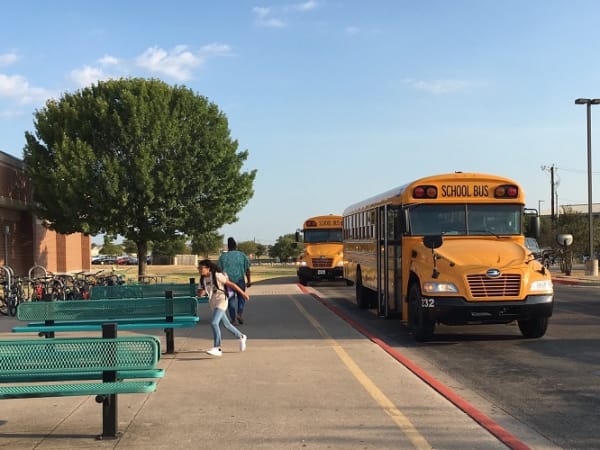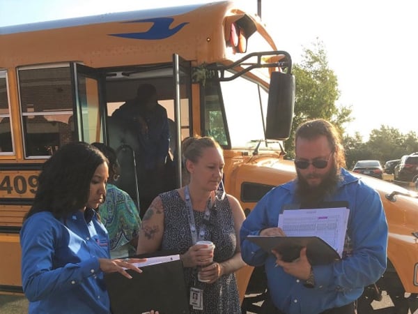 Transportation staff members were on-hand during the first day to ensure student pick ups and drop offs went smoothly. Photo courtesy Pflugerville ISD Community Relations