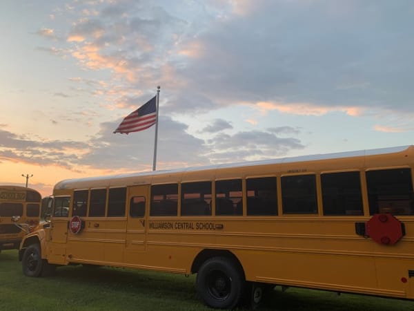 Less than a week before the first day of school, Chuck O’Neill, the transportation director for Williamson (N.Y.) Central School District, captured this shot of one of the district’s buses parked under the sunrise.