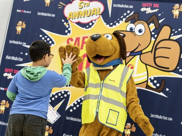First Student continued its fifth annual Safety Dog Bus Tour, a tour designed to reinforce safe school bus behavior, with a stop at Osseo Area Schools in Brooklyn Park, Minn., on Sept. 19. Photo courtesy First Student