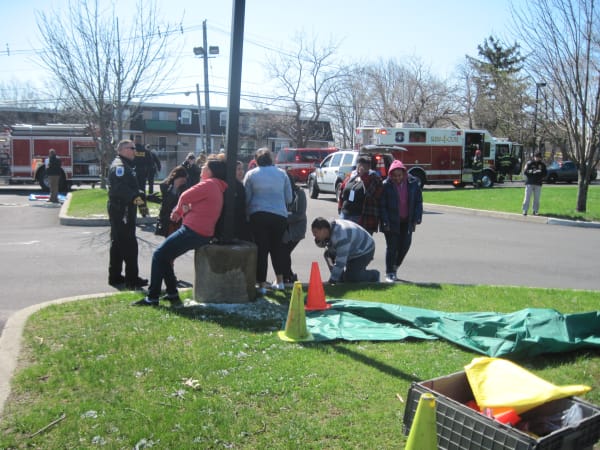 During the drill held at an elementary school within Perth Amboy Public Schools, an accident was simulated in which a drunken driver struck a school bus full of students. All photos are courtesy of Edmund Treadaway Jr., son of Transportation Manager Edmund Treadaway.