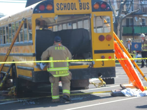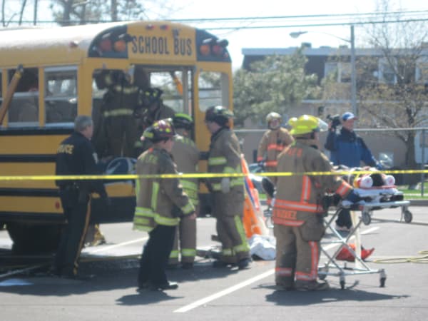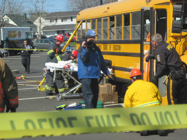 Perth Amboy (N.J.) Public Schools' transportation department conducts the full-scale drill in partnership with the city's police and fire departments, as well as EMS personnel and students, to better prepare all involved in the event of a real emergency. Here are shots from the event, which was nine months in the making.