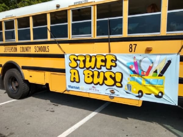Jefferson County (W. Va.) Schools’ transportation department, in collaboration with a local Walmart, held its second annual “Stuff A Bus” event on Aug. 3. Photo courtesy Christopher Coffman