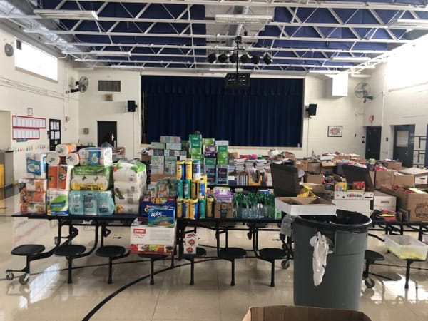 By the event's end, the team had collected enough items to fill one of the district’s elementary school gymnasiums.