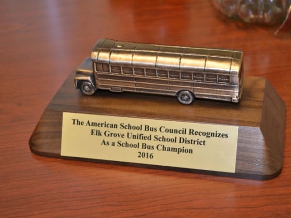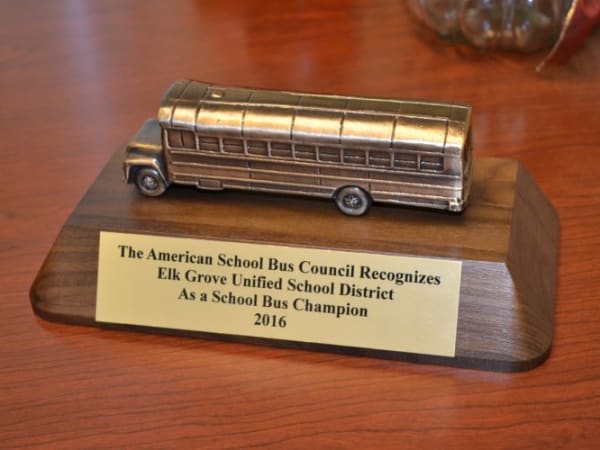 The American School Bus Council recently honored Elk Grove USD with the council’s School Bus Champion Award.