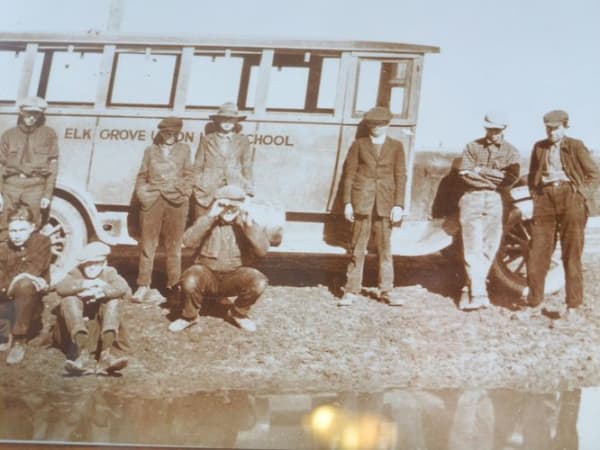 This vintage Elk Grove USD transportation photo is on display in the entry to the department’s office.