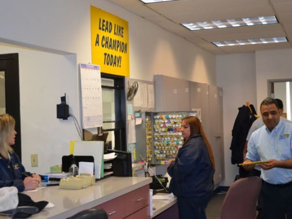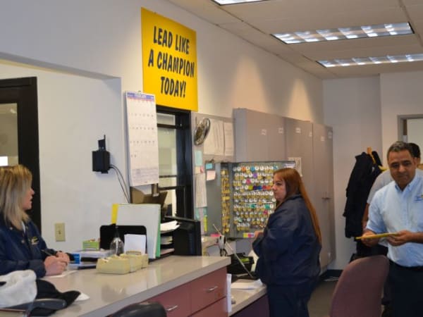 Appropriately enough, a sign in the Elk Grove USD transportation office reads “Lead Like a Champion Today!”