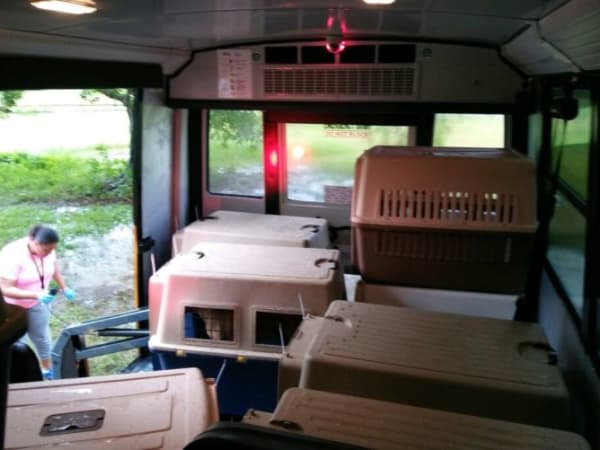 St. Lucie Public Schools’ buses transported people as well as pets (seen here in kennels) to storm shelters.
