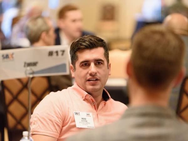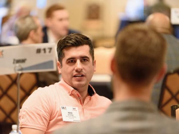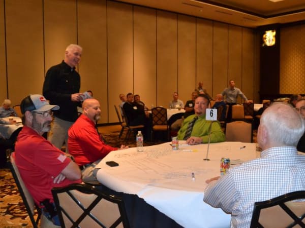 Another SBX activity was one-on-one consultations, in which school bus operators met with suppliers. Seen here is Reid Oyster of Apple Bus Co., talking with reps from Zonar.