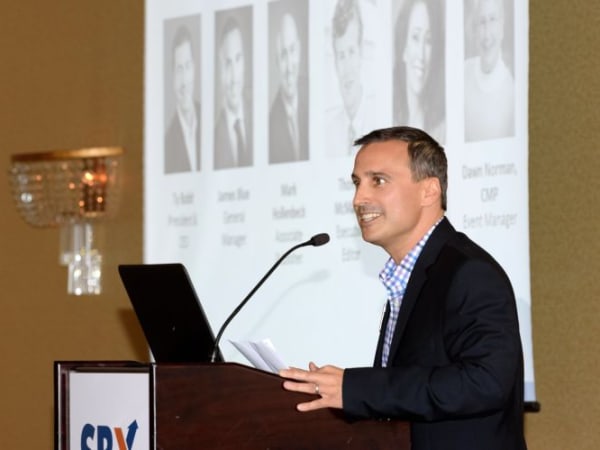 Mike Martin, executive director of NAPT, served as emcee for SBX. Here, he welcomes the group on the first night.