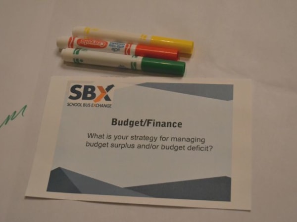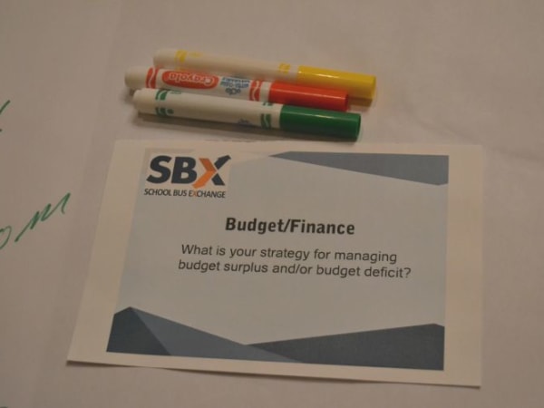 Each table had a set topic — for example, budget/finance — and a starter question for the first group.