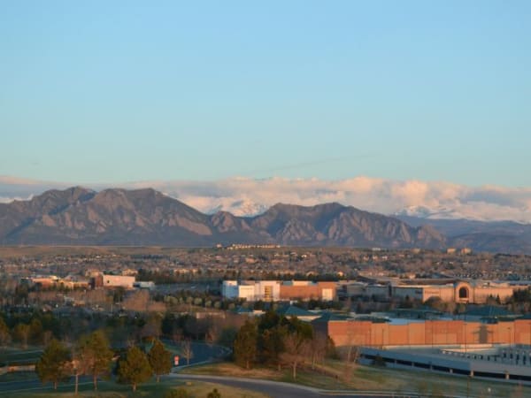 The snow-capped Rocky Mountains, seen here from a window in the hotel, were a dramatic backdrop for the event.