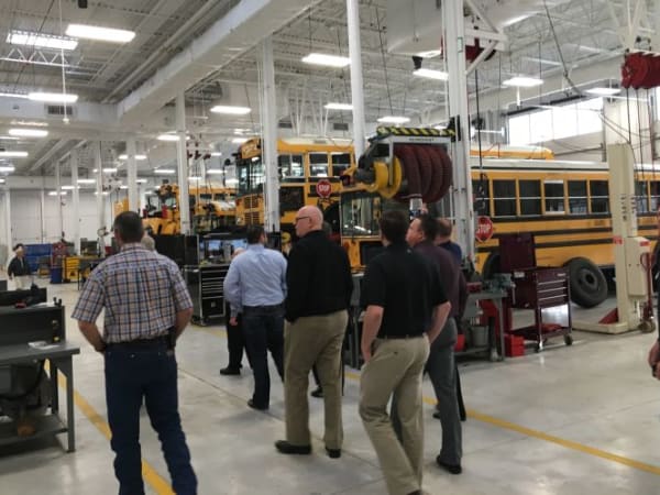 SBX attendees got to tour the transportation facility at nearby Adams 12 Five Star Schools. The building has features to reduce energy use, such as extra insulation, skylights, and heated shop floors.