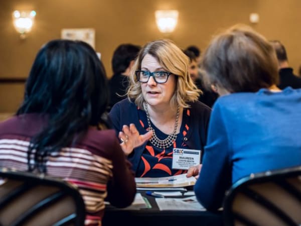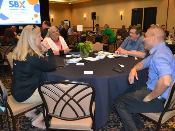 SBX attendees discuss challenges with student behavior on the bus during a roundtable session.