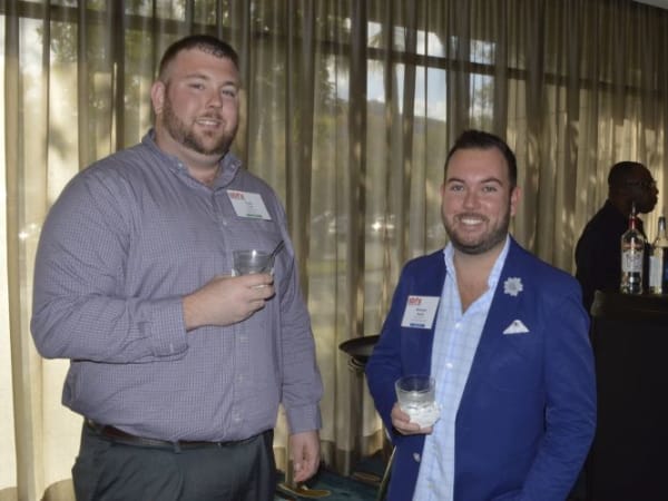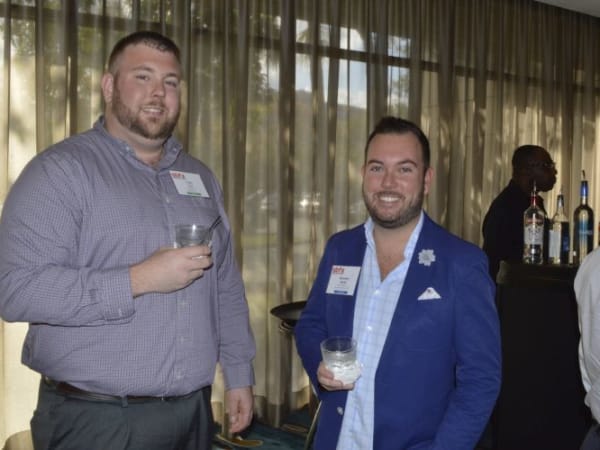 Attendees such as Cody Cox of Bellville (Texas) ISD (left) and Brandon Berish of Micro Bird had a chance to network over cocktails the evening of April 1.