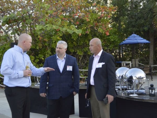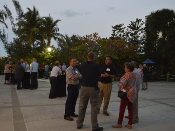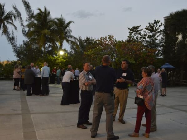 Operators and suppliers continue socializing on the patio by the pool that evening.