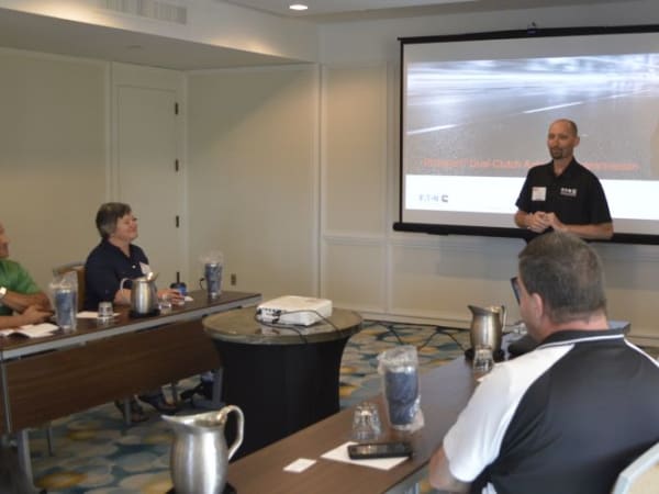Dan Pesche of Eaton Cummins Automated Transmission Technologies updates attendees on a new transmission option for school buses.