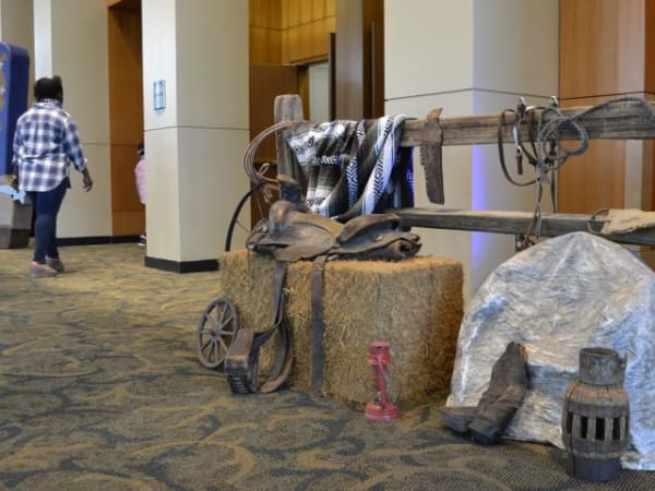 The banquet was decked out with western decorations.