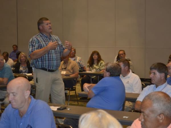 SBF Executive Editor Thomas McMahon (left) talks with Arkansas state director Mike Simmons and former Alabama state director Joe Lightsey. This photo by Jaime Gallego. Read more about the conference in SBF's coverage here.