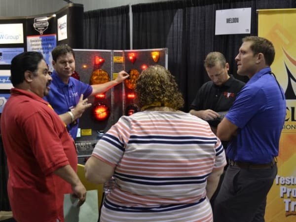 Attendees learn about lighting technology at the Weldon booth.