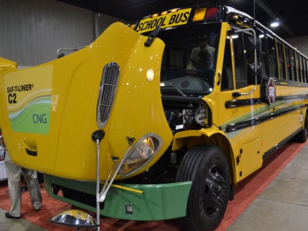 Thomas Built Buses displayed its new compressed natural gas-powered C2 school bus.