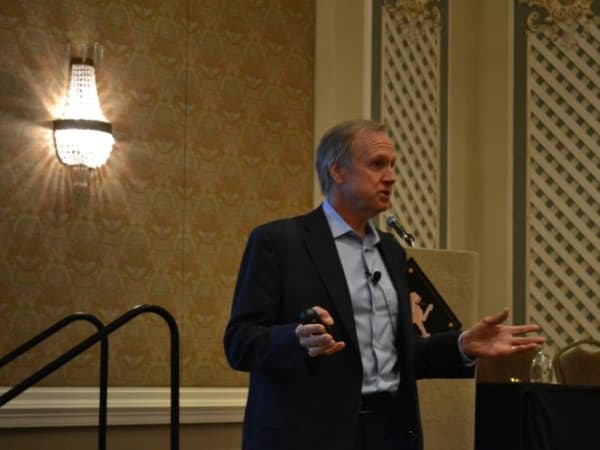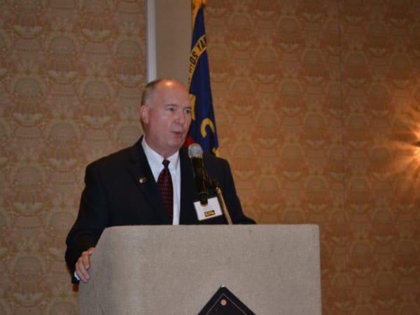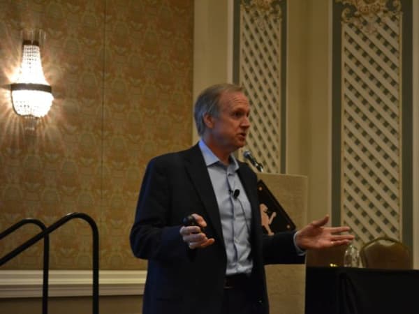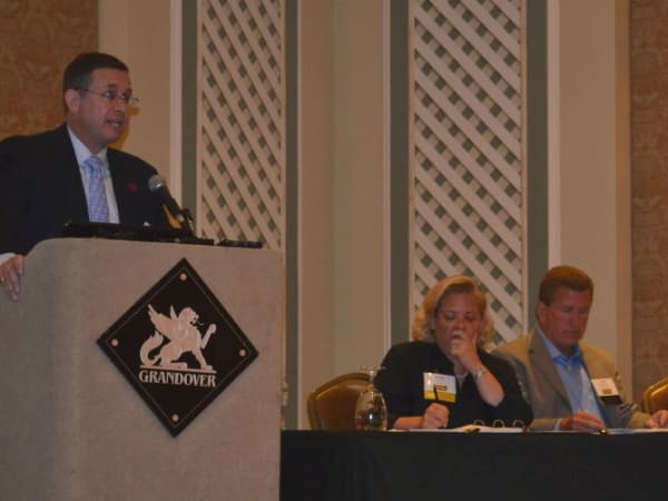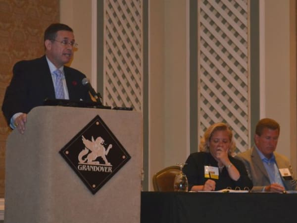 NSTA President Todd Monteferrario of First Student is seen here leading a membership meeting.