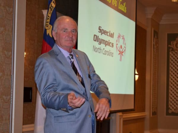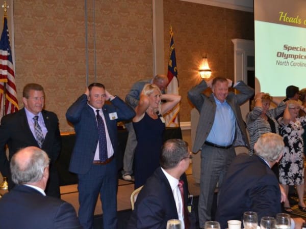 During the NSTA awards banquet, a fundraiser was held for Special Olympics North Carolina. Bob Pape of Dell Transportation led attendees in a game of heads or tails.