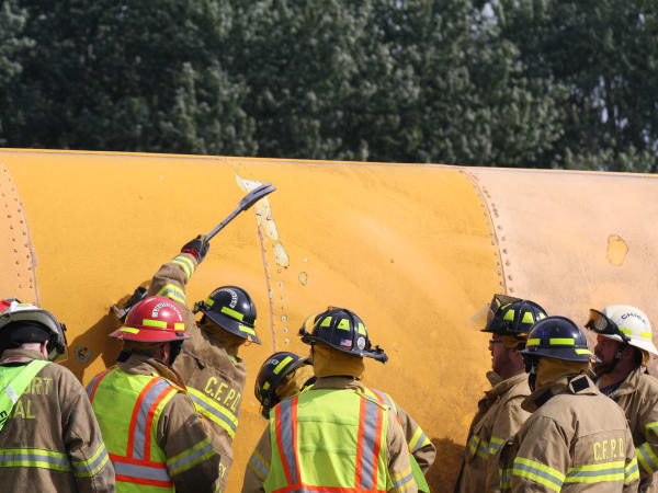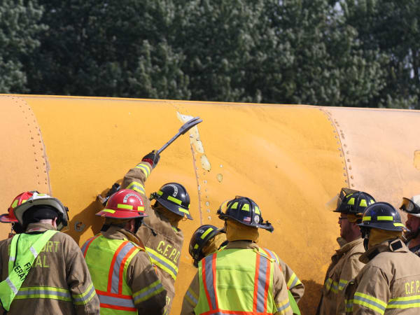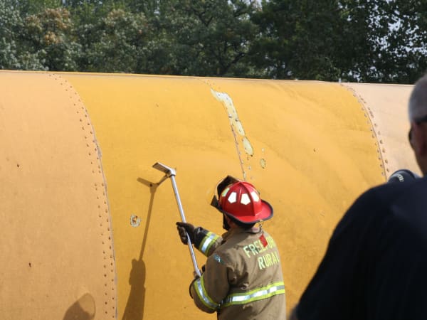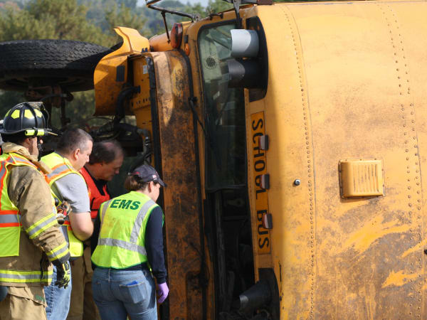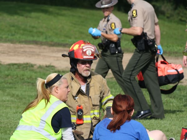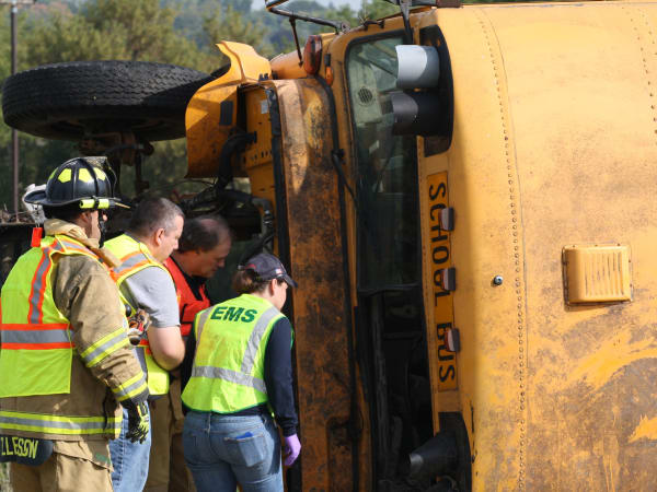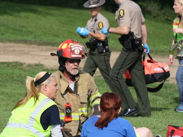 Dallas Pieper, director of transportation at the district, coordinated with the local emergency management agency, fire department, law enforcement, hospital and students from a school's drama department to create the scenario. An "intersection" where the accident took place was staged at the local fairgrounds and included an overturned bus with kids trapped inside.