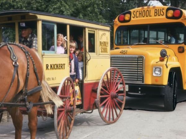 Starting with a horse-drawn wagon in 1915, Kickert School Bus Line has been transporting students to school for a full century. Have a look at the company’s vehicles of yesterday and today.