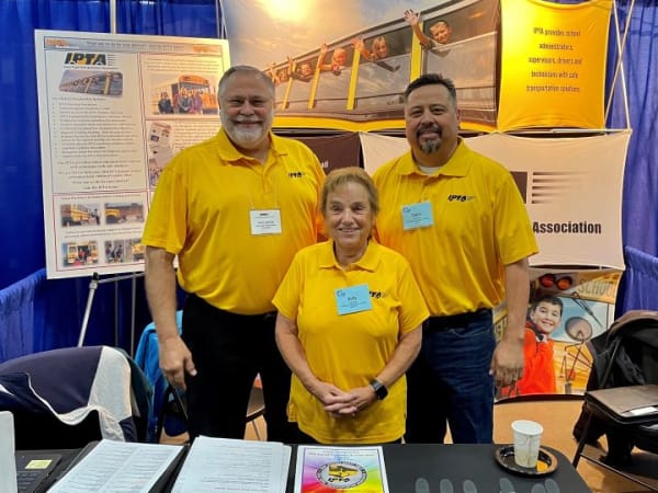 Chris Darling (left), executive director of the Iowa Pupil Transportation Association (IPTA) is shown here with board member Betty Gola, and Carlos Guerra, board president.