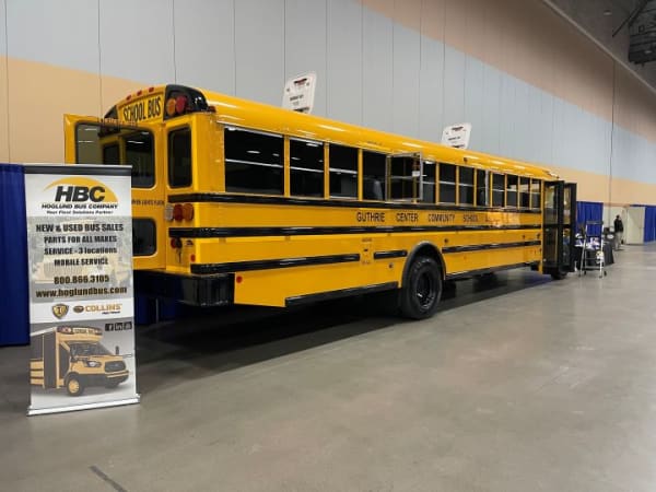 The Hoglund Bus Company exhibit at the Iowa Association of School Boards convention featured an IC Bus vehicle from Guthrie Center Community School District.